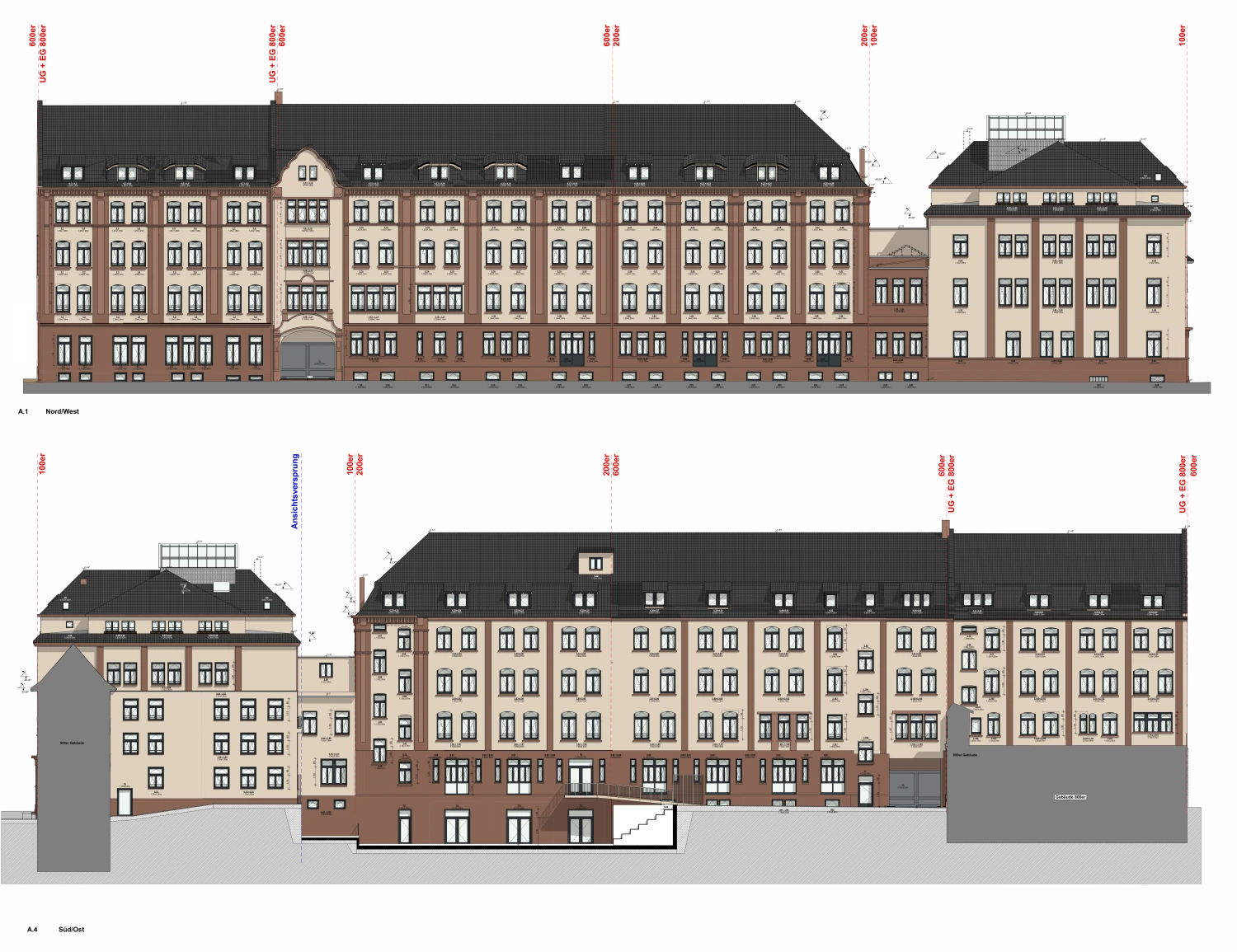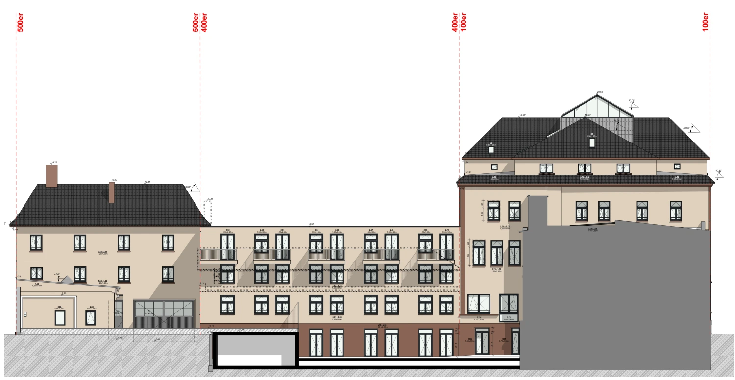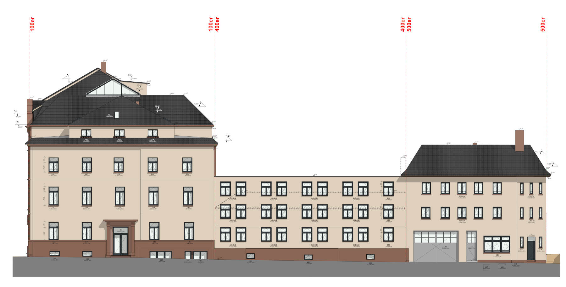Im Rahmen der Planung erfolgte auch eine komplette Neustrukturierung der gesamten Anlage, so erhalten die einzelnen Zimmer eigene Nasszellen statt Gemeinschaftsbädern, zusätzliche Gemeinschaftsflächen, Kindergarten etc.